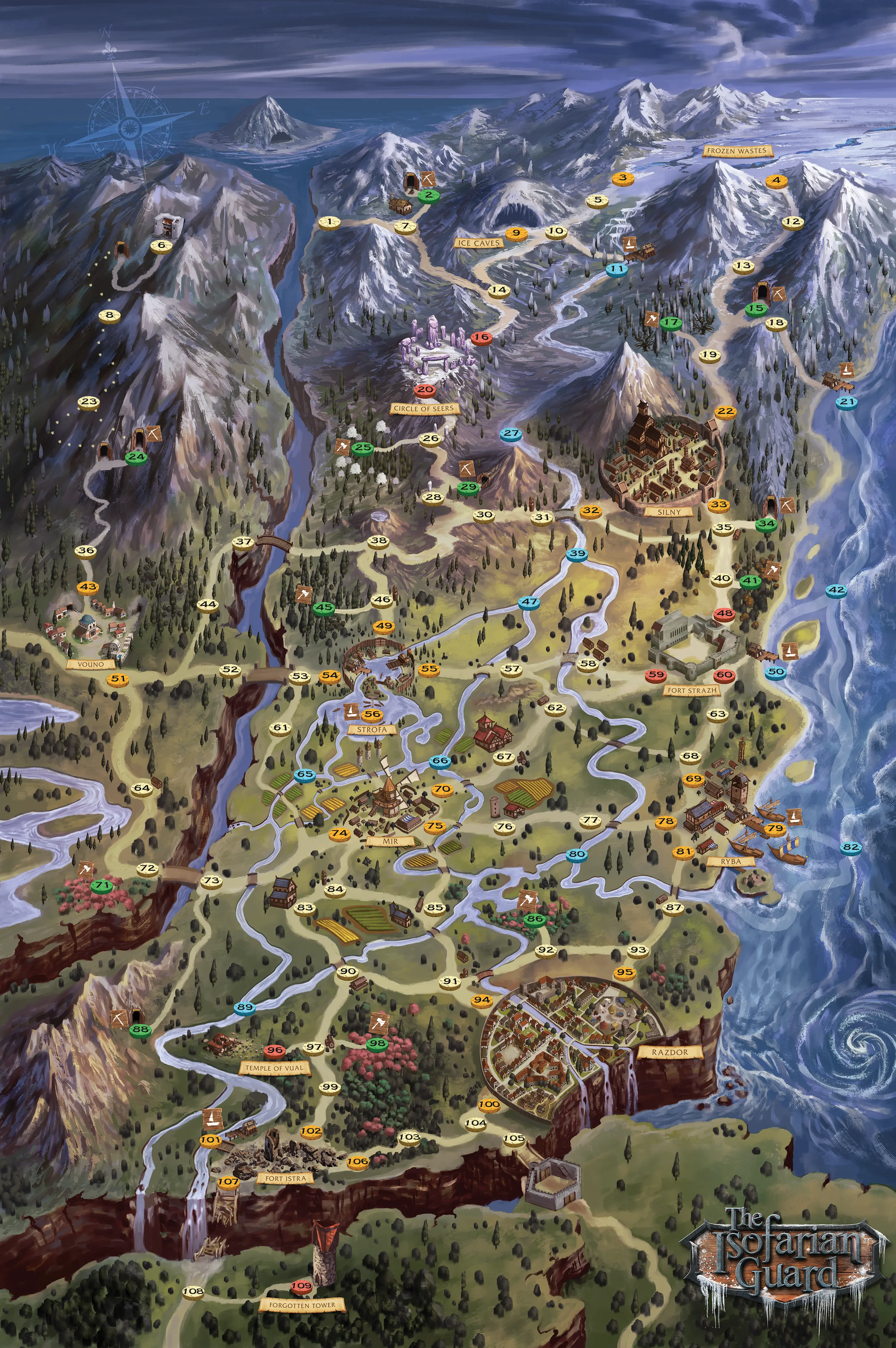 The Isofarian Guard can be played with 1–2 players. Unless the campaign dictates otherwise, there are always two members of the Guard traveling and fighting together, with players controlling one each in co-op play. Nothing changes during solo play except that one player will control both members of each party.